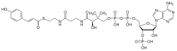 The biosynthetic precursor to chlorogenic acid is 4-coumaroyl-CoA, containing a single hydroxyl group on the aryl ring, which in turn is produced from cinnamic acid. The hydroxylation of the coumaryl ester, i.e. installing the second hydroxy group, is catalyzed by a cytochrome P450 enzyme.[8]