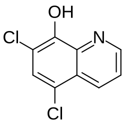 Chloroxine (trade name Capitrol; Kloroxin, Dichlorchinolinol, chlorquinol, halquinol(s)); Latin cloroxinum, dichlorchinolinolum) is an antibacterial drug.[1] Oral formulations (under trade name such as Endiaron[2]) are used in infectious diarrhea, disorders of the intestinal microflora (e.g. after antibiotic treatment), giardiasis, inflammatory bowel disease. It is also useful for dandruff and seborrheic dermatitis.,[3] as used in shampoos (Capitrol) and dermal creams like (Valpeda, Triaderm).