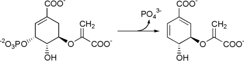 - 5-O-(1-carboxyvinyl)-3-phosphoshikimate → chorismate + phosphate.