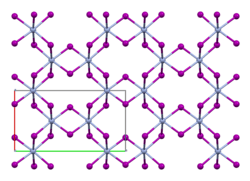 Like the isomorphous chromium(III) chloride (CrCl3), chromium(III) iodide exhibits a cubic-closest packing arrangement in a double-layer crystal lattice. In this structure, chromium exhibits octahedral coordination geometry.[4]