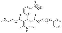 Cilnidipine is a calcium channel blocker. Cilnidipine is approved for use in Japan, China, India, Nepal, and Korea for hypertension.