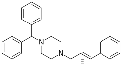 Cinnarizine is an antihistamine and calcium channel blocker of the diphenylmethylpiperazine group.[5] It is prescribed for nausea and vomiting due to motion sickness[6] or other sources such as chemotherapy,[7] vertigo,[8] or Ménière's disease.[9] Cinnarizine is one of the leading causes of drug-induced parkinsonism.[5]