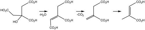 In the laboratory, citraconic acid can be produced by thermal isomerization of itaconic acid anhydride to give citraconic anhydride, which can be hydrolyzed to citraconic acid.[3] The required itaconic acid anhydride is obtained by dry distillation of citric acid.