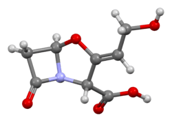 - ^ Reading C, Cole M (May 1977). "Clavulanic acid: a beta-lactamase-inhiting beta-lactam from Streptomyces clavuligerus". Antimicrobial Agents and Chemotherapy. 11 (5): 852–857. doi:10.1128/AAC.11.5.852. PMC 352086. PMID 879738.