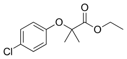 Clofibrate (trade name Atromid-S) is a lipid-lowering agent used for controlling the high cholesterol and triacylglyceride level in the blood. It belongs to the class of fibrates. It increases lipoprotein lipase activity to promote the conversion of VLDL to LDL, and hence reduce the level of VLDL. It can increase the level of HDL as well.