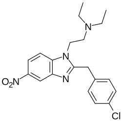 - ^ Hunger A, Kebrle J, Rossi A, Hoffmann K (October 1957). "[Synthesis of analgesically active benzimidazole derivatives with basic substitutions]" [Synthesis of analgesically active benzimidazole derivatives with basic substitutions]. Experientia. 13 (10): 400–1. doi:10.1007/BF02161116. PMID 13473817. S2CID 32179439.