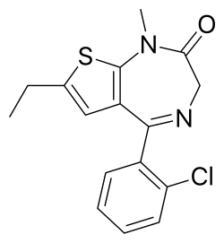 - ^ DE 2107356, Nakanishi M, Kazuhiko A, Tetsuya T, Shiroki M, "Thieno-(2,3-E)(1,4)diazepin-2-ones", issued 3 May 1978, assigned to Yoshitomi Pharmaceutical Industries, Ltd.