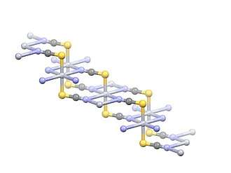 Cobalt(II) thiocyanate is an inorganic compound with the formula Co(SCN)2.[1] The anhydrous compound is a coordination polymer with a layered structure. The trihydrate, Co(SCN)2(H2O)3, is a isothiocyanate complex used in the cobalt thiocyanate test (or Scott test) for detecting cocaine.