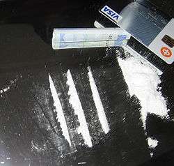 Most banknotes have traces of cocaine on them; this has been confirmed by studies done in several countries.[87] In 1994, the US 9th Circuit Court of Appeals cited findings that in Los Angeles, three out of four banknotes were tainted by cocaine or another illicit drug.[88][89]