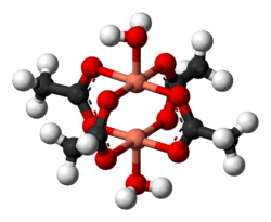 15. ^ Brown, G. M.; Chidambaram, R. (1973-11-15). "Dinuclear copper(II) acetate monohydrate: a redetermination of the structure by neutron-diffraction analysis". Acta Crystallographica Section B: Structural Crystallography and Crystal Chemistry. 29 (11): 2393–2403. Bibcode:1973AcCrB..29.2393B. doi:10.1107/S0567740873006758. ISSN 0567-7408.