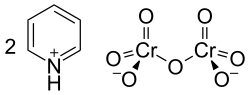 The Cornforth reagent (pyridinium dichromate or PDC) is a pyridinium salt of dichromate with the chemical formula [C5H5NH]2[Cr2O7]. This compound is named after the Australian-British chemist Sir John Warcup Cornforth, who introduced it in 1962.[2][3] The Cornforth reagent is a strong oxidizing agent which can convert primary and secondary alcohols to aldehydes and ketones respectively. In its chemical structure and functions it is closely related to other compounds made from hexavalent chromium oxide, such as pyridinium chlorochromate and Collins reagent. Because of their toxicity, these reagents are rarely used nowadays.[4]