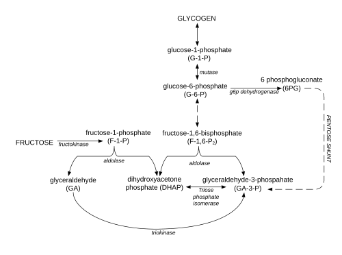 Metabolism of fructose to DHAP and glyceraldehyde