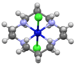 - ^ Ito, T.; Kato, M.; Ito, H. (1984). "The Structures of trans-Dichloro- and trans-Bis(isothiocyanato)nickel(II) Complexes with 1,4,8,11-Tetraazacyclotetradecane, 1,4,8,12-Tetraazacyclopentadecane, and 1,5,9,13-Tetraazacyclohexadecane. The Negative Correlation between the Axial and In-plane Coordination Bond Lengths in Tetragonal Ni(II) Complexes of the trans-NiX2N4 Type". Bull. Chem. Soc. Jpn. 57 (9): 2641. doi:10.1246/bcsj.57.2641.