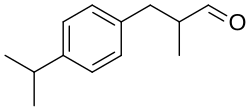 Cyclamen aldehyde is an organic compound with the formula (CH3)2CHC6H4CH2CH(CH3)CHO. It is a chiral compound although it is most commonly used as the racemate. It is a component of fragrances.[1] It has been used in soaps, detergents, lotions, and perfumes since the 1920s.[2] It was granted generally recognized as safe (GRAS) status by the Flavor and Extract Manufacturers Association (FEMA) in 1965 and is approved by the Food and Drug Administration for food use in the United States. The Council of Europe (1970) included cyclamen aldehyde in the list of admissible artificial flavoring substances, at a level of 1 ppm. It is a colorless compound, although commercial samples can appear yellowish..[1]