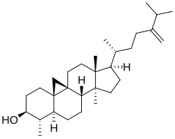 Cycloeucalenol is a naturally occurring triterpenoid and a sterol-like compound found in certain plants[3][4] (i.e. Boophone disticha,[5] Herissanthia tiubae,[6] etc.) and microorganisms. It is classified as a cycloartane-type triterpenoid, a subgroup of terpenoids characterized by a cyclopropane ring in their structure. Cycloeucalenol is an intermediate in the biosynthesis of phytosterols, which are essential components of plant cell membranes.[7]