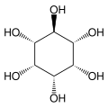Cyclohexane-1,2,3,4,5,6-hexol is a family of chemical compounds with formula C6H12O6, whose molecule consists of a ring of six carbon atoms, each bound to one hydrogen atom and one hydroxyl group (–OH). There are nine stereoisomers, that differ by the position of the hydroxyl groups relative to the mean plane of the ring. All these compounds are sometimes called inositol, although this name (especially in biochemistry and related sciences) most often refers to a particular isomer, myo-inositol, which has many important physiological roles and medical uses.