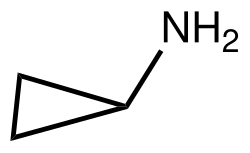 Cyclopropylamine is the organic compound with the formula C3H5NH2. It is a simple amine derivative of cyclopropane.[1] As a precursor to pesticides and pharmaceuticals, it is produced on a multi-ton scale from the carboxamide.[2] Cycloproylamine is first member of the aminocycloalkanes, which includes cyclobutylamine, cyclopentylamine, and cyclohexylamine.