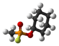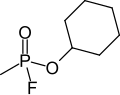 Cyclosarin or GF (cyclohexyl methylphosphonofluoridate) is an extremely toxic substance used as a chemical weapon.[1] It is a member of the G-series family of nerve agents, a group of chemical weapons discovered and synthesized by a German team led by Gerhard Schrader. The major nerve gases are the G agents, sarin (GB), soman (GD), tabun (GA), and the V agents such as VX. The original agent, tabun, was discovered in Germany in 1936 in the process of work on organophosphorus insecticides. Next came sarin, soman and finally, cyclosarin, a product of commercial insecticide laboratories prior to World War II.