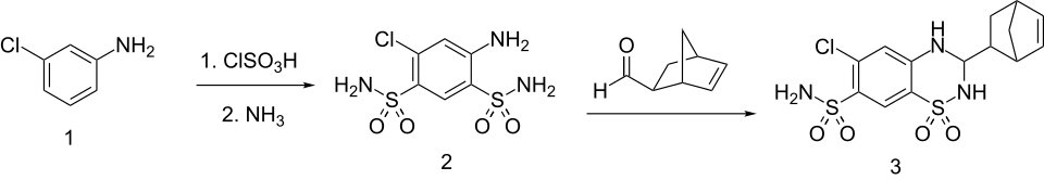 - ^ Whitehead CW, Traverso JJ, Sullivan HR, Marshall FJ (1961). "Diuretics. V. 3,4-Dihydro-1,2,4-benzothiadiazine 1,1-Dioxides". The Journal of Organic Chemistry. 26 (8): 2814–2818. doi:10.1021/jo01066a046.