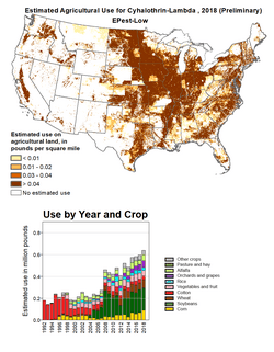 - ^ US Geological Survey (12 October 2021). "Estimated Agricultural Use for λ-cyhalothrin, 2018". Retrieved 17 January 2022.