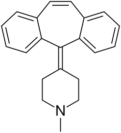 - ^ Liu T. "BindingDB BDBM50017721 1-Methyl-4-(5H-dibenzo(a,d)cycloheptenylidene)piperidine::1-methyl-4-(5-dibenzo(a,e)cycloheptatrienylidene)piperidine::4-(5-dibenzo(a,d)cyclohepten-5-ylidine)-1-methylpiperidine::4-(5H-dibenzo(a,d)cyclohepten-5-ylidene)-1-methylpiperidine::4-(5H-dibenzo[a,d][7]annulen-5-ylidene)-1-methylpiperidine4-(5H-dibenzo[a,d]cyclohepten-5-ylidene)-1-methylpiperidine::5-(1-methylpiperidylidene-4)-5H-dibenzo(a,d)cyclopheptene::CHEMBL516::CYPROHEPTADINE". BindingDB. Retrieved 6 December 2024.