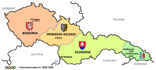 The First Czechoslovak Republic comprised only 27% of the population of the former Austria-Hungary, but nearly 80% of the industry, which enabled it to compete with Western industrial states.[71] In 1929 compared to 1913, the gross domestic product increased by 52% and industrial production by 41%. In 1938 Czechoslovakia held 10th place in the world industrial production.[74] Czechoslovakia was the only country in Central and Eastern Europe to remain a liberal democracy throughout the entire interwar period.[75] Although the First Czechoslovak Republic was a unitary state, it provided certain rights to its minorities, the largest being Germans (23.6% in 1921), Hungarians (5.6%) and Ukrainians (3.5%).[76]