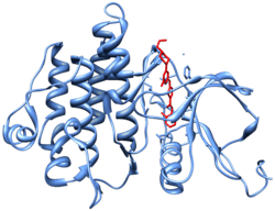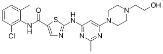 - ^ Tokarski JS, Newitt JA, Chang CY, Cheng JD, Wittekind M, Kiefer SE, et al. (June 2006). "The structure of Dasatinib (BMS-354825) bound to activated ABL kinase domain elucidates its inhibitory activity against imatinib-resistant ABL mutants". Cancer Research. 66 (11): 5790–7. doi:10.1158/0008-5472.CAN-05-4187. PMID 16740718.