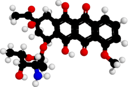 Daunorubicin, also known as daunomycin, is a chemotherapy medication used to treat cancer.[2] Specifically it is used for acute myeloid leukemia (AML), acute lymphoblastic leukemia (ALL), chronic myelogenous leukemia (CML), and Kaposi's sarcoma.[2] It is administered by injection into a vein.[2] A liposomal formulation known as liposomal daunorubicin also exists.[2]