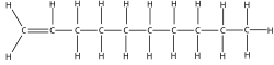 Decene /dɛkiːn/ is an organic compound with the chemical formula C10H20. Decene contains a chain of ten carbon atoms with one double bond, making it an alkene. There are many isomers of decene depending on the position and geometry of the double bond. Dec-1-ene is the only isomer of industrial importance. As an alpha olefin, it is used as a comonomer in copolymers and is an intermediate in the production of epoxides, amines, oxo alcohols, synthetic lubricants, synthetic fatty acids and alkylated aromatics.[2]
