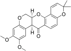 Deguelin is a derivative of rotenone. Both are compounds classified as rotenoids of the flavonoid family and are naturally occurring insecticides. They can be produced by extraction from several plant species belonging to three genera of the legume family, Fabaceae: Lonchocarpus, Derris, or Tephrosia.