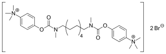 Demecarium bromide, trade name Humorsol, is a carbamate parasympathomimetic drug that acts as an acetylcholinesterase inhibitor, and is used as a glaucoma medication. It is applied directly to the eye in order to reduce elevated intraocular pressure associated with glaucoma.[1]