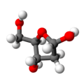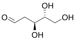 Several isomers exist with the formula H−(C=O)−(CH2)−(CHOH)3−H, but in deoxyribose all the hydroxyl groups are on the same side in the Fischer projection. The term "2-deoxyribose" may refer to either of two enantiomers: the biologically important d-2-deoxyribose and to the rarely encountered mirror image l-2-deoxyribose.[5] d-2-deoxyribose is a precursor to the nucleic acid DNA. 2-deoxyribose is an aldopentose, that is, a monosaccharide with five carbon atoms and having an aldehyde functional group.