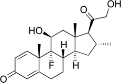 Desoximetasone is a medication belonging to the family of medications known as topical corticosteroids. It is used for the relief of various skin conditions, including rashes. It helps to reduce redness, itching, and irritation.[1] Desoximetasone is a synthetic corticosteroid, a class of primarily synthetic steroids used as anti-inflammatory and anti-pruritic agents.
