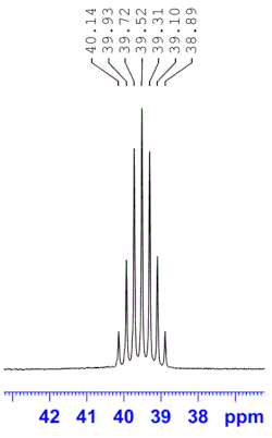 DMSO is a good solvent for many organic compounds. Because deuterated DMSO does not contain any 1</1H atoms, it produces no peaks in 1H-NMR and as a result is commonly used as a solvent for NMR experiments.[2] Commercially available deuteriated DMSO is not isotopically pure. The residual DMSO-d5 produces a 1H-NMR signal observed at 2.50 ppm, which appears as a quintet (JHD=1.9Hz). In 13C-NMR, the chemical shift of DMSO-d6 is 39.52 ppm, and appears as a septet.[3]