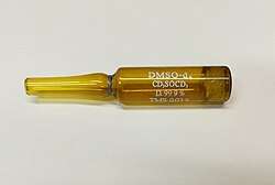 Deuterated DMSO, also known as dimethyl sulfoxide-d6, is an isotopologue of dimethyl sulfoxide (DMSO, (CH3)2S=O)) with chemical formula ((CD3)2S=O) in which the hydrogen atoms ("H") are replaced with their deuterium ("D") isotope. Deuterated DMSO is a common solvent used in nuclear magnetic resonance spectroscopy (NMR).