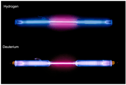 The reduced mass of the system in these equations is close to the mass of a single electron, but differs from it by a small amount about equal to the ratio of mass of the electron to the nucleus. For 1H, this amount is about 1837/1836, or 1.000545, and for 2H it is even smaller: 3671/3670, or 1.000272. The energies of electronic spectra lines for 2H and 1H therefore differ by the ratio of these two numbers, which is 1.000272. The wavelengths of all deuterium spectroscopic lines are shorter than the corresponding lines of light hydrogen, by 0.0272%. In astronomical observation, this corresponds to a blue Doppler shift of 0.0272% of the speed of light, or 81.6 km/s.[9]