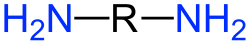 General structure of (primary) diamines. The primary amino groups (NH2) are marked blue,