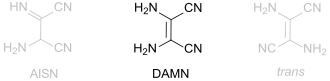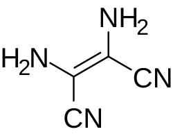 Diaminomaleonitrile (DAMN) is an organic compound composed of two amino groups and two nitrile groups bonded to a central alkene unit. The systematic name reflects its relationship to maleic acid. DAMN forms by oligomerization of hydrogen cyanide. It is the starting point for the synthesis of several classes of heterocyclic compounds. It has been considered as a possible organic chemical present in prebiotic conditions.[2]