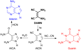 - ^ Roy, Debjani; Najafian, Katayoun; von Ragué Schleyer, Paul (2007-10-30). "Chemical evolution: The mechanism of the formation of adenine under prebiotic conditions". Proceedings of the National Academy of Sciences. 104 (44): 17272–17277. doi:10.1073/pnas.0708434104. ISSN 0027-8424. PMC 2077245. PMID 17951429.