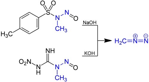 Common routes for the preparation of diazomethane: Diazald (top), MNNG (bottom)