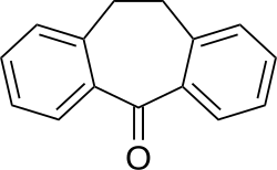 Dibenzosuberone is an organic chemical with use in drug synthesis. Chemically speaking, it is benzophenone bonded by a 2 carbon bridge into a seven membered ring. In contrast to dibenzosuberenone, the 2 carbon bridge is saturated with hydrogen and is not an olefin. In the dihydro series, the two benzene rings are not only out of plane, but also helical with respect to one another.[1]