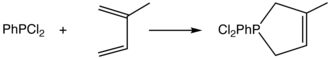 In the McCormack reaction dichlorophenylphosphine adds dienes to give the chlorophospholenium ring.[4]