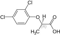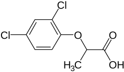 Dichlorprop is a chlorophenoxy herbicide similar in structure to 2,4-D that is used to kill annual and perennial broadleaf weeds. It is a component of many common weedkillers. About 4 million pounds of dichlorprop are used annually in the United States.