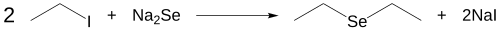 It may be prepared by a substitution reaction similar to the Williamson ether synthesis: reaction of a metal selenide, such as sodium selenide, with two equivalents of ethyl iodide or similar reagent to supply the ethyl groups: