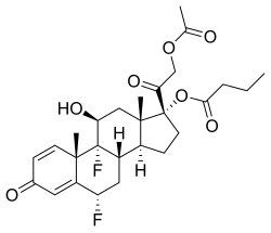 Difluprednate, sold under the brand name Durezol, is a corticosteroid used for the treatment of post-operative ocular inflammation and pain.[1]