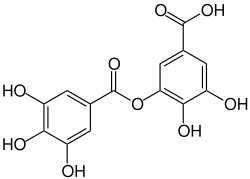 Digallic acid is a polyphenolic compound found in Pistacia lentiscus.[1] Digallic acid is also present in the molecule of tannic acid.[2] Digalloyl esters involve either -meta, or -para depside bonds.[3]