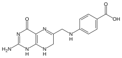 Dihydropteroate is an important intermediate in folate biosynthesis. It is a pterin created from para-aminobenzoic acid (PABA) by the enzyme dihydropteroate synthase.[2]