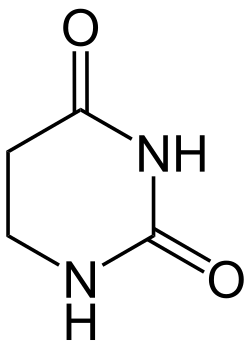 Dihydrouracil is an intermediate in the catabolism of uracil.[1] The enzyme dihydrouracil dehydrogenase (NAD+) converts uracil to dihydrouracil: