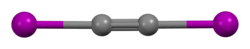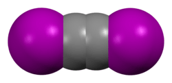Diiodoacetylene is the organoiodine compound with the formula C2I2. It is a white, volatile solid that dissolves in organic solvents. It is prepared by iodination of trimethylsilylacetylene.[1] Although samples explode above 80 °C, diiodoacetylene is the most readily handled of the dihaloacetylenes. Dichloroacetylene, for example, is more volatile and more explosive.[2] As confirmed by X-ray crystallography, diiodoacetylene is linear,[3] with the structure I−C≡C−I. It is however a shock, heat and friction sensitive compound. Like other haloalkynes, diiodoacetylene is a strong halogen bond donor.[4]