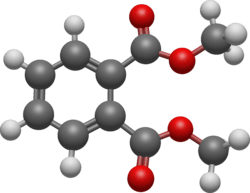 It is used in a variety of products and is most commonly used as insect repellent such as ectoparasiticide for mosquitoes and flies for animal livestock.[4] The short-chain or low molecular weight phthalate is also frequently used in consumer products such as cosmetics, ink, soap, household cleaning supplies, etc.[5] Other uses of DMP include solid rocket propellants (as a stabilizer) and plastics.[4][5]